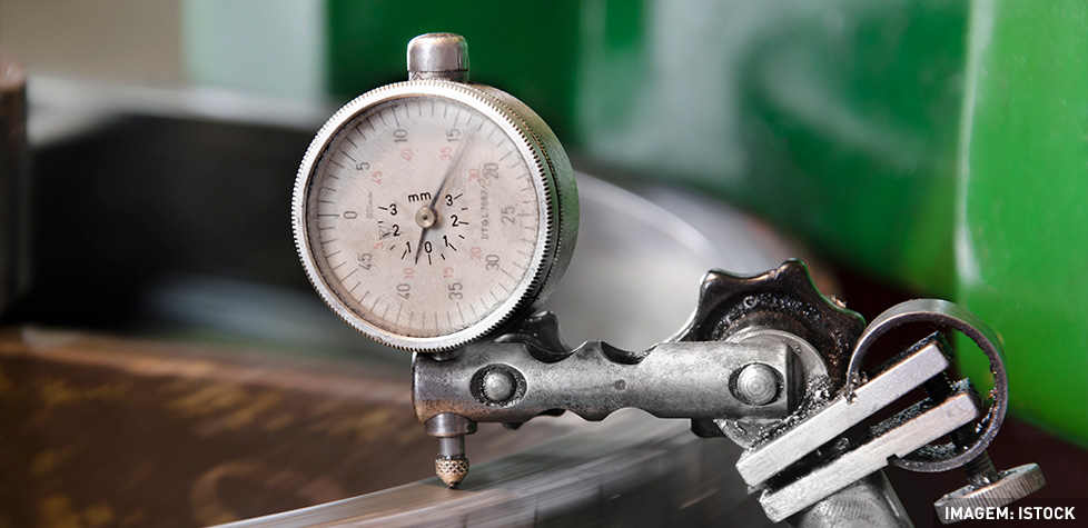 No teste de dureza, um penetrador com mola é utilizado para atravessar a amostra. Quanto mais macio o material, maior será a profundidade de penetração do penetrador.
