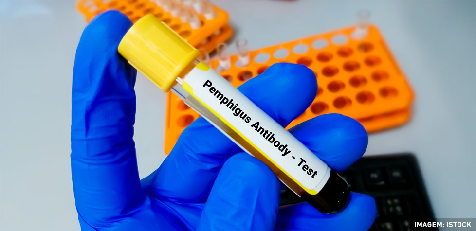 É uma doença autoimune rara em que o sistema imunológico produz anticorpos que atacam e destroem as células da pele do couro cabeludo, rosto, pescoço, tórax ou costas. Essa doença causa sintomas como bolhas ou feridas que causam sensação de ardor, queimação e dor, sendo mais comum em adultos e pessoas mais velhas que vivem em regiões rurais.