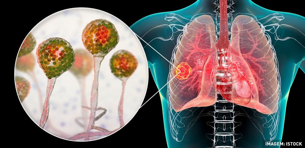 O pulmão é o segundo local mais acometido por mucormicose, e a inalação de esporos é a principal rota de infecção. A apresentação clínica é indiferenciável da aspergilose pulmonar invasiva. Pacientes com leucemia e linfoma correspondem à maioria dos casos (37%), seguida de diabetes melito (32%).